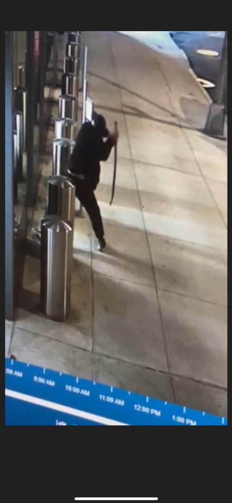 2nd Ave tarafından geldiği ve tüm camları elindeki sopa ile patlattığı tespit edilen ve kimliği henüz belirlenemeyen erkek saldırganın güvenlik kameralarına yansıyan görüntüleri ortaya çıktı.