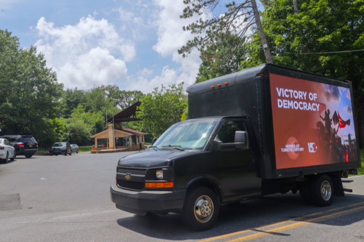Diğer taraftan ışıklı tabelalarda, Türk bayrağı ve darbe girişimi gecesinden fotoğraflarla birlikte, "Demokrasinin Zaferi" yazan iki araç, FETÖ elebaşının bulunduğu Saylorsburg sokaklarında sabahtan yerel saatle 16.00'ya kadar tur attı.