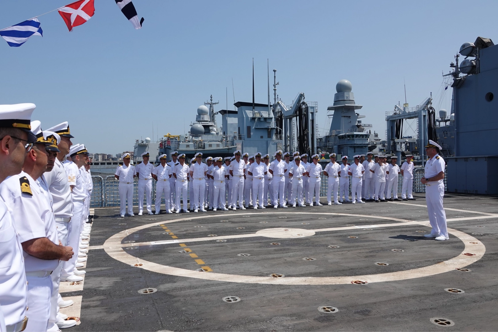 Ziyaret, NATO görev grubu kapsamında Türkiye’nin denizdeki etkin rolünü bir kez daha ortaya koyarken, bayramlaşma töreni de Türk denizcilerin birliğini ve dayanışmasını simgeledi.