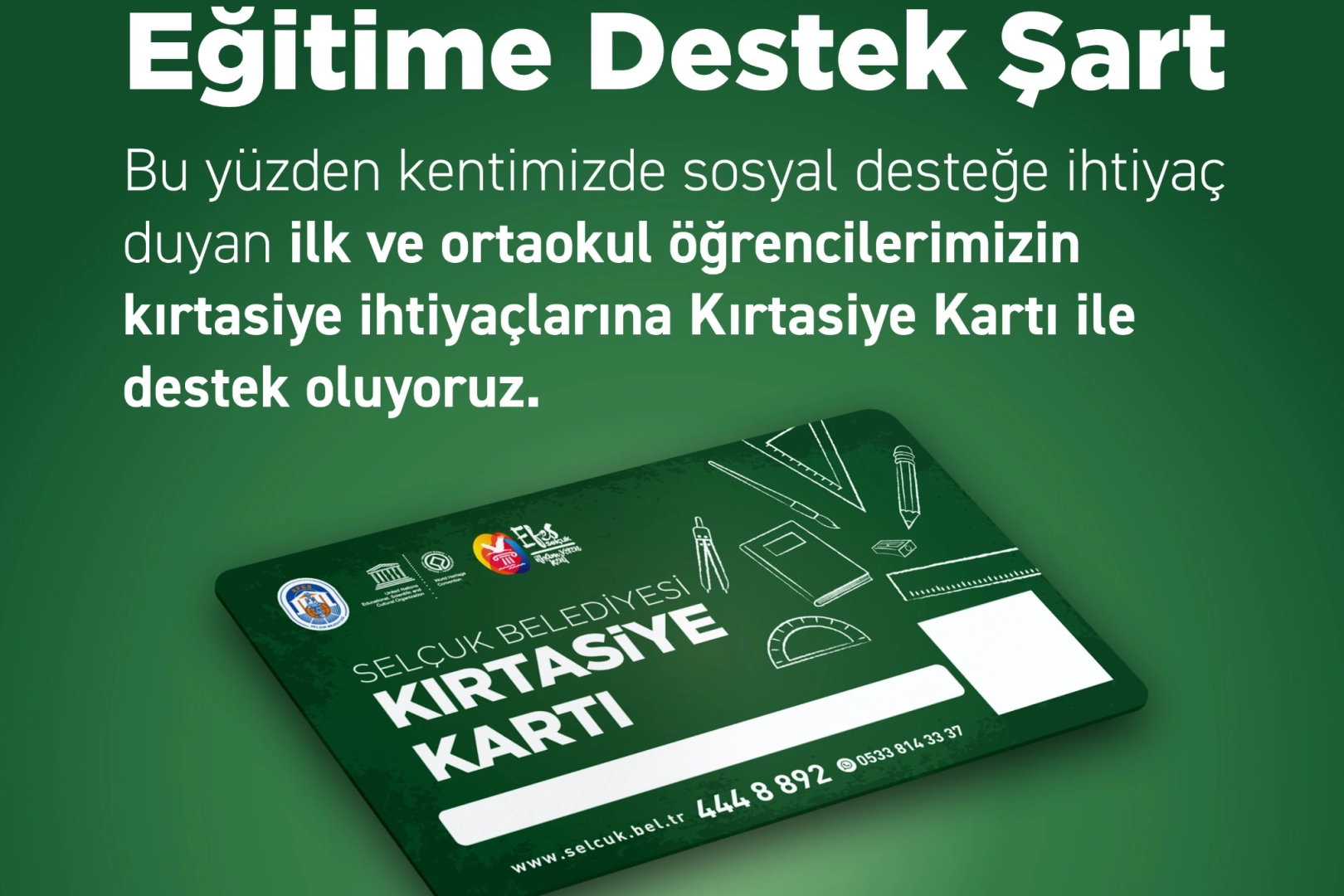 Efes Selçuk Belediyesi Sosyal Yardım İşleri Müdürlüğü, sosyal desteğe ihtiyaç duyan ailelerin ilkokul ve ortaokul seviyesinde eğitim gören çocukları için Kırtasiye Kartı desteği veriyor.