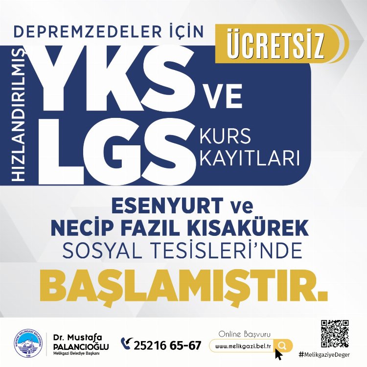 Kayseri Melikgazi Belediyesi olarak depremin acılarını unutturmak için tüm imkânları seferber ettiklerini söyleyen Melikgazi Belediye Başkanı Dr. Mustafa Palancıoğlu, "Deprem felaketini yaşayan çocukların travmalarını atlatmaları için gerek deprem bölgesinde gerekse Kayserimizde tüm imkanları seferber ettik. LGS hazırlık kurslarında 8’inci sınıf öğrencilerine Fen Bilimleri, Matematik, Türkçe ve Sosyal Bilimler, YKS hazırlık kurslarında 12’inci sınıf ve mezunlar için Türkçe, Edebiyat, Matematik, Fizik, Kimya, Biyoloji, Tarih, Coğrafya ve Felsefe dersleri verilecek.