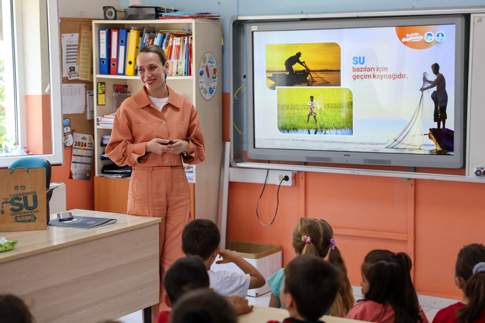 Hendek Akova İlkokulu’nda gerçekleştirilen eğitimde interaktif sunumlar ve animasyon destekli içerikler eşliğinde öğrencilere suyun doğal döngüsü, arıtma süreçleri ve evde uygulanabilecek tasarruf yöntemleri aktarıldı.