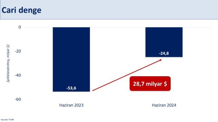 Aylık cari dengenin fazla verdiği Haziran ayında yıllık açık 24,8 milyar dolar gerçekleşti. Hazine ve Maliye Bakanı Şimşek, sosyal medya hesabından yaptığı paylaşımda, Haziran ayına ilişkin Ödemeler Dengesi İstatistikleri'ni değerlendirdi.