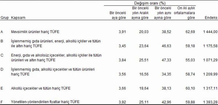 Özel kapsamlı TÜFE göstergesi (B) yıllık yüzde 46,63, aylık yüzde 3,45 oldu.
