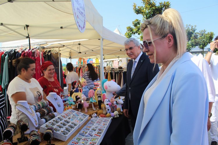 Sakarya Büyükşehir Belediye Başkanı Ekrem Yüce ile SAKİKAD Başkanı Nagihan Aygün Girişimci kadınlar tarafından üretilen el emeği ürünlerin sergilendiği stantları gezerek üretilen ürünleri tek tek inceledikten sonra ürünler hakkında girişimcilerden bilgi aldılar.