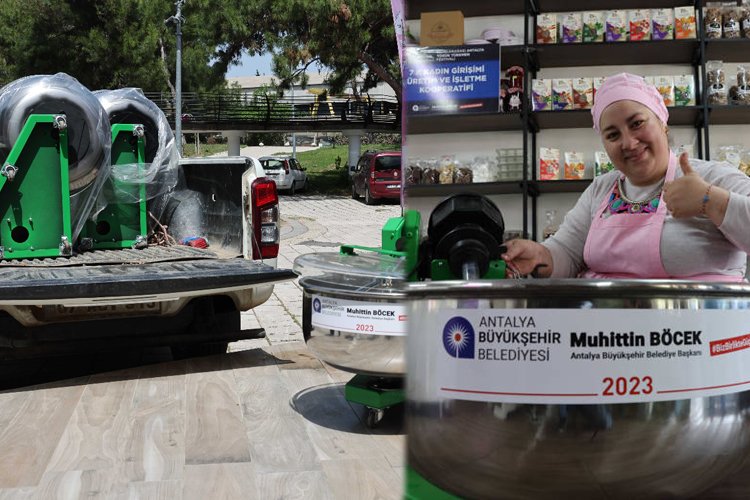 Antalya Büyükşehir Belediye Başkanı Muhittin Böcek’in ‘Unu sizden yoğurması bizden’ sloganıyla kadınların emek gücünü kolaylaştıran ve zamandan tasarruf etmelerini sağlayan hamur makinesi hibe kampanyası devam ediyor.