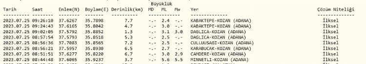 Öte yandan saat 8.44'te yaşanan 5,5'lik deprem sonrasında şu ana kadar Kandilli Rasathanesi'nin verilerine göre, Adana merkezli 2,4 ile 3,1 büyüklüklerinde 7 farklı sarsıntı kaydedildi.