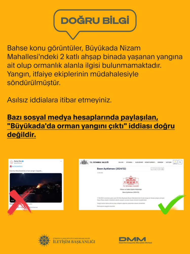 İletişim Başkanlığı ayrıca yangın haberlerine yönelik dezenformasyonla mücadeleyi de sürdürüyor.