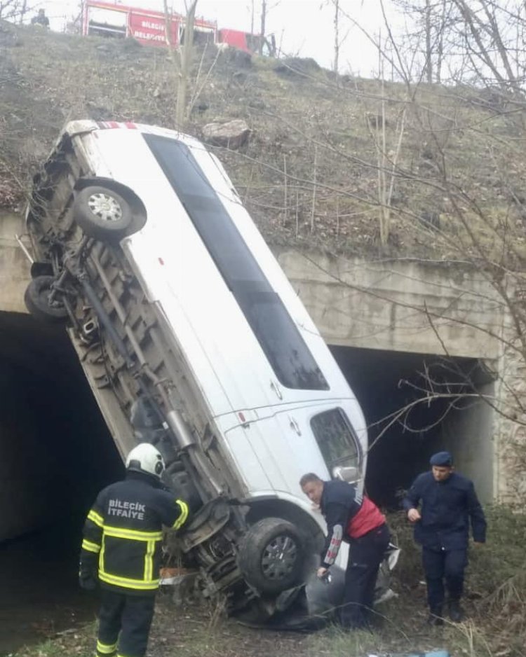 Sedat CEYLAN / BİLECİK (İGFA) - Alınan bilgiye göre Bilecik Şehirlerarası Otobüs Terminali'nden Vezirhan’a seyir halinde olan 34 LAM 907 plakalı minibüs Kuyubaşı mevkii tüneller bölgesinde dereye yatağına uçtu.