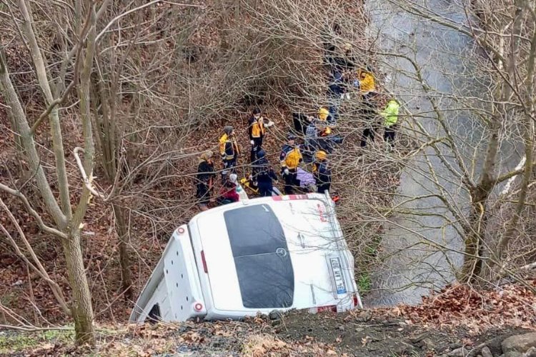 Bilecik’te sürücüsünün direksiyon hakimiyetini kaybettiği minibüs dereye uçtu kazada 13 kişi yaralandı.