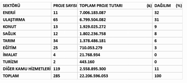 Yatırımcı kuruluşlar tarafından yürütülen projelerin toplam değerinin 22 milyar 206 milyon 596 bin 53 TL olduğunu bildiren Ekinci, ayrıca, 2023 yılı yatırım programında yer alan projelere ayrılan ödenek miktarının (ek ödenek dâhil) 3 milyar 27 milyon 44 bin 777 TL olduğunu, 2023 yılı harcamasının 948 milyon 534 bin 57 TL ve önceki yıllar harcamasının 8 milyar 367 milyon 432 bin 611 TL olduğunu, böylece toplamda 9 milyar 315 milyon 966 bin 668 TL harcama yapıldığını açıkladı. Ekinci, nakdi gerçekleşme oranının %42 olduğunu söyledi.