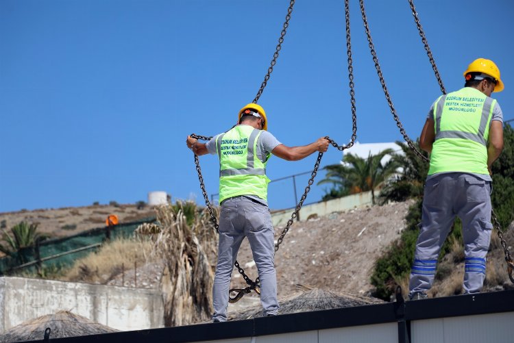 Bodrum sahilindeki 22 konteynere belediye müdahalesi