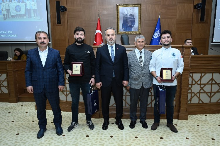 Bu yıl 19’uncusu yapılan İstanbul Uluslararası Mutfak Günleri çerçevesinde düzenlenen yarışmada 4 ayrı kategoride 8 altın madalya kazanan Bursa Uludağ Üniversitesi Harmancık MYO Aşçılık Programı öğrencileri de ayın vatandaşı seçildi. Aldıkları madalyalar ile Bursa’yı gastronomide de öne çıkaran gençlere plaket ve hediyeleri Başkan Alinur Aktaş tarafından verildi.