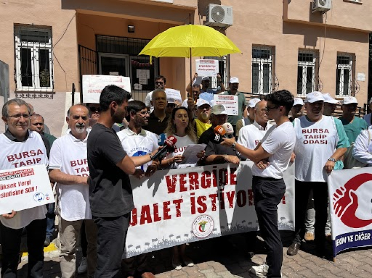 Bursa Tabip Odası bugün, ‘vergide adalet’ konulu bir basın açıklaması gerçekleştirdi. Vergi sisteminin eleştirildiği basın açıklamasında, vergi oranlarının yetkililer tarafından yeniden gözden geçirilmesi talep edildi.