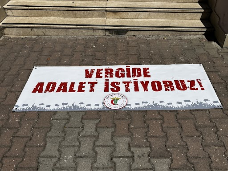 Ücretli çalışanların maaşlarından artan oranlarda vergi kesintisi yapılmasına da tepki gösterilen açıklamada, “Emeğimizin karşılığı olmasını beklediğimiz maaşlarımızın, alım gücünün giderek azalmasını adil bulmuyoruz ve takdir edersiniz ki yıl içinde hak edişlerimizden %35’lere varan vergilerle maaş kesintileri yapılması hiç adil değildir. Toplanan vergi gelirlerinin %65’inin dolaylı vergiler olan ÖTV ve KDV ile kazanıldığı söylenirken, temel tüketim ürünlerinde bile yükselen vergiler adil değildir. Tüm çalışanlar zaten hayatın doğal akışı içinde bu dolaylı vergileri öderken bir de maaşlarından %35’lere varan oranda vergi kesintisi yapılması adil değildir. Çalışanların maaşlarından damga vergisi kesintisi adil değildir. Aile hekimleri ve Aile sağlığı çalışanlarına destek, teşvik ödemesi gibi zaten emekliliğe yansımayan ödeme kalemlerinin de vergiye dâhil edilmesi adil değildir. Maaş zammı yapıldı haberleri yayılırken zamlı maaşlarımızın daha elimize geçmeden artan vergi dilimine girerek kesintiye uğraması adil değildir.” ifadeleri kullanıldı.