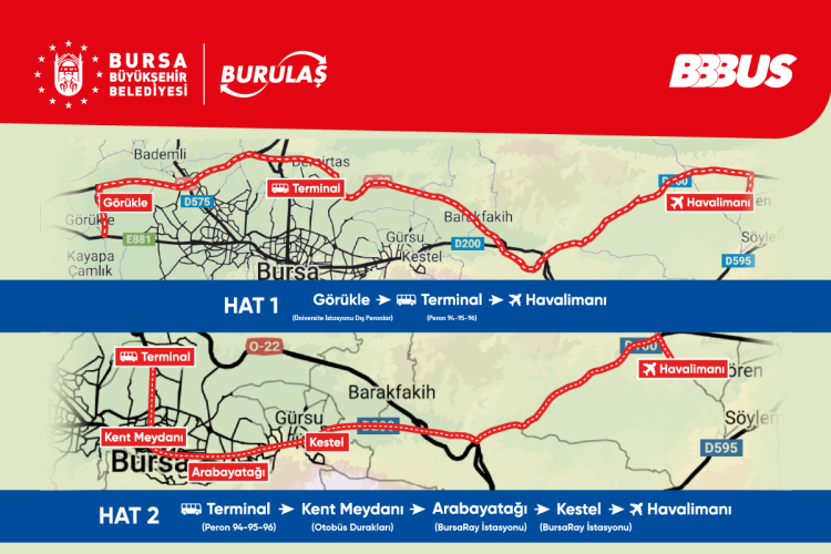 Yeni sefer hatları, Görükle-Terminal-Yenişehir Havalimanı ile Terminal-Kent Meydanı-Arabayatağı-Kestel-Yenişehir Havalimanı şeklinde olacak.