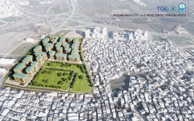 Yıldırım Belediyesi’nin Mevlana Mahallesi’nde TOKİ iş birliği ile hayata gerçekleştirdiği dönüşümde çalışmaların yüzde 60’ı tamamlandı. Domino etkisi ile bölgenin dönüşümüne hız kazandıracak ve model oluşturacak Mevlana Kentsel Dönüşüm Projesi 7. ve 8. etaplar olmak üzere 2 bölümde inşa ediliyor. Deprem riski altındaki güvensiz ve sağlıksız konutların yıkılarak, yerine; modern, güvenli ve sağlıklı konutların yapılacağı projede hak sahipleri ile yüzde 100 oranında uzlaşma sağlandı. Rezerv alan kullanılmadan 60 dönümlük alanda hayata geçirilen dönüşüm kapsamında toplamda 944 konut yıkılırken, yerine bin 244 konut inşa edilecek.
