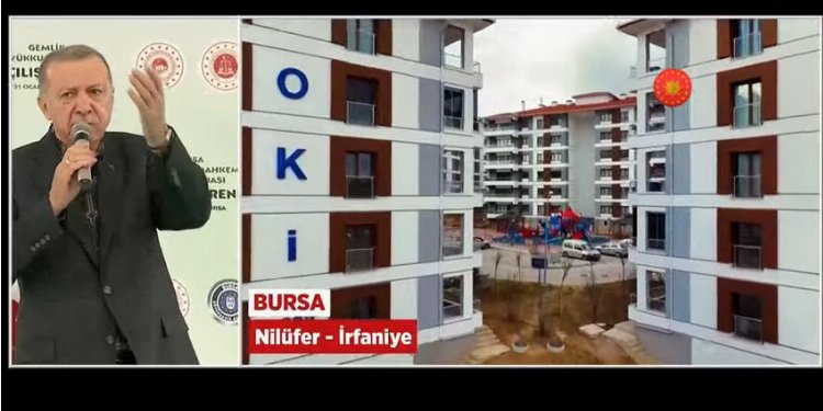 Cumhurbaşkanı Erdoğan, Gemlik Büyükkumla Barajı, Bursa Bölge İdare Mahkemesi Hizmet Binası, Dağyenice Doğal Yaşam Turizm Kompleksi ve yapımı tamamlanan diğer projelerin toplu açılış töreninde Bursalılara hitap ediyor.
