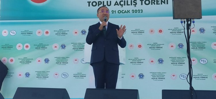 BURSA (İGFA) - Cumhurbaşkanı Recep Tayyip Erdoğan, Bursa Gökdere Meydanı’nda düzenlediği miting ile toplu açılış töreni gerçekleştiriyor. Cumhurbaşkanı Erdoğan'a Adalet Bakanı Bekir Bozdağ, Gençlik ve Spor Bakanı Mehmet Muharrem Kasapoğlu, Çevre ve Şehircilik Bakanı Murat Kurum, Aile ve Sosyal Hizmetler Bakanı Derya Yanık, Millî Eğitim Bakanı Mahmut Özer, Ulaştırma ve Altyapı Bakanı Adil Karaismailoğlu eşlik ediyor.