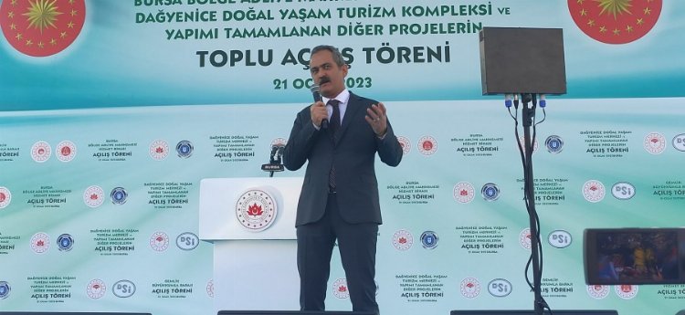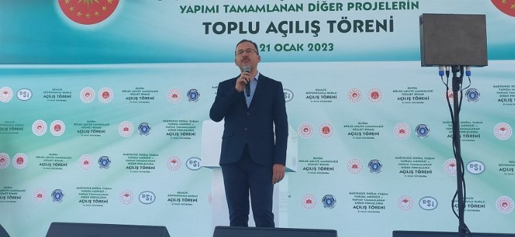 Çevre Şehircilik ve İklim Bakanı Murat Kurum, “Gökdere Meydanı'nda bizleri büyük bir coşkuyla karşılayan tüm Bursalı kardeşlerimize muhabbetlerimi iletiyorum. Bugün hep birlikte tarihi bir günü yaşıyoruz. Türkiye yüzyılının Bursa'sına yakışacak birbirinden kıymetli açılışları yapıyoruz. Gururlu ve mutluyuz. Bundan tam 7 asır önce bu şehirde bir hilal doğdu. Medeniyetimiz bu şehirden kök saldı. Bereket, huzur ve mutluluk buradan dalga dalga yayıldı. Bursa'da medeniyetimizin izlerini taşıyan yerlerin başında tarihi Hanlar Bölgesi geliyor. Bursa'nın 50 yıllık hayalini gerçekleştiriyoruz. Bursa'ya zarar verecek yapıları kaldırdık. Ulucami ve çevresinde yeni yeşil alanları Bursa'ya kazandırıyoruz. Bizim adalarımızın emanet ettiği değerleri koruyacak çalışmaları yürütüyoruz. Hayalimiz ve hedefimiz var. Büyük ve güçlü Türkiye hedefimiz var Bursa'ya çok daha güçlendirecek çalışmalarımızı Bursalı hanım ve genç kardeşlerimizle yapacağız. Tüm kardeşlerimizle yapacağız. Cumhurbaşkanımız rekor oylarla destekleyecek miyiz? Allah sizlerden razı olsun. Nerede bir afet varsa orada olacağız. Vatandaşlarımızın yanında olacağız. Büyük ve güçlü Türkiye'yi hep birlikte inşaa edeceğiz” diye konuştu.