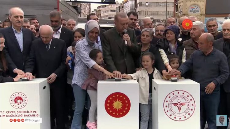 Cumhurbaşkanı Erdoğan, deprem konutları ile yeni Devlet Hastanesi'nin temelleri İskenderun'da düzenlenen törenle attı. 'Deprem turistleri' olarak nitelendirdiği muhalefeti deprem bölgelerinde görmediğini belirten Erdoğan, bu kesimin terör örgütüyle kucak kucağa seçime yürüdüğünü anlattı.
