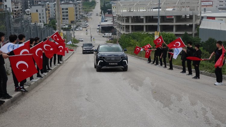 Başkan Aktaş, dün gelen Togg ile birlikte ilk yolculuğunu da geleceğin otomotivcilerini yetiştiren bu okula yaptı. Öğrenciler tarafından okulun girişinde Türk Bayrakları ile karşılanan Togg, büyük heyecan uyandırdı.