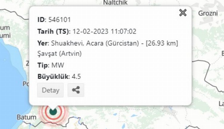 Hatırlanacağı gibi, dün akşam saat 18.33’te de Acara Özerk Cumhuriyeti'nde bulunan Kobuleti kentinde 4,5 büyüklüğünde depremin meydana gelmişti.