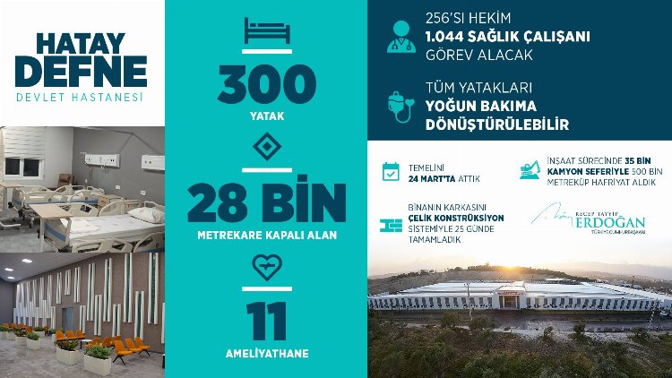 Hastande 256'sı hekim, bin 44 sağlık çalışanının görev alacağı Defne Devlet Hastanesi'nde tüm yatakların yoğun bakıma dönüştürülebileceği bildirildi.