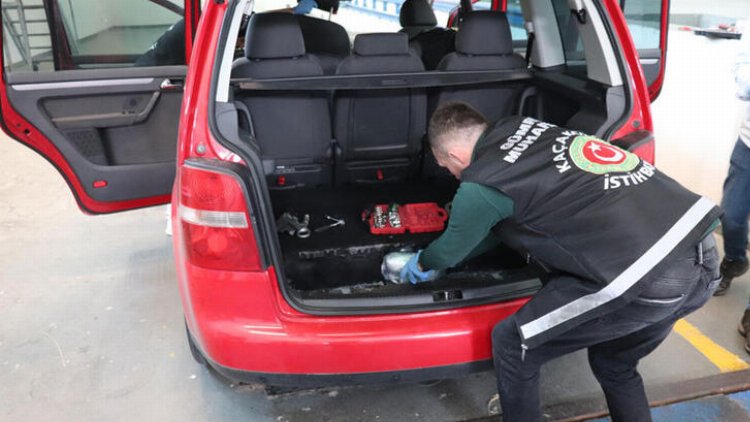 Dedektör köpeğinde tepki vermesi üzerine yapılan detaylı aramada aracın ön ve arka zeminleriyle bagaj havuzundaki zula ortaya çıkarıldı.