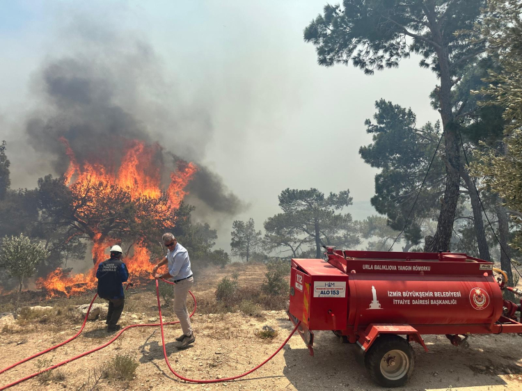 İzmir İtfaiyesi ekiplerinin yanı sıra İzmir Orman Bölge Müdürlüğü’ne ait 2 uçak, 6 helikopterin havadan müdahale ettiği yangını söndürme çalışmalarında çok sayıda arazöz ve ilçe belediyelerince gönderilen su tankerleri kullanılıyor.