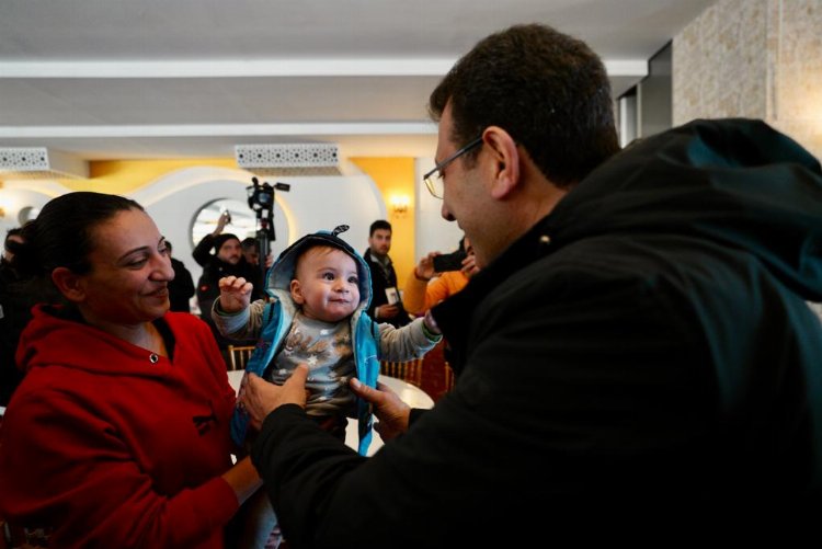 Bu sırada İmamoğlu ve bir vatandaş arasında ilginç bir diyalog yaşandı. İmamoğlu, “Kurdukları birkaç prefabriği gözünüze sokmasınlar. -16 derecede nasıl dayanalım çadırda. Yerli imalat, seri imalata girsin. Gümüşhane'de ağaçtan yapıyorlar. Ağaç da kabulümüz ya. Çadırla olmaz Başkan'ım. Durulmuyor, hasta var, şey var. Kurtlar geliyor” sözlerine, “Yıkımın olduğu yerlerde çadırla olmaz o iş. Çadırda 10-15 gün durulabilir” yanıtını verdi. İmamoğlu, acılı vatandaşın, “Muhalefet olarak bağırın. Destek de verin” uyarını da “Bağıracağız, destek de vereceğiz, biz de yapacağız elimizin yettiği kadar” şeklinde yanıtladı. Aynı vatandaşın, “Başkanım, size (İstanbul’a) 7-8 yedi milyon yük bindi. O yükü buraya, sadece prefabrik geri getirir. İstanbul'un da yükü ağırlaştı, İzmir'in de yükü ağırlaştı. Antalya’nın yükü arttı. İnsanları çadırla oyalamasınlar. Buraya prefabrik şehirleşmeyi bir an evvel getirsinler. Eşleri burada çalışıyor, çocuklarımızı yolladık. İnsanlar üç tane haneyi misafir edemez” sözlerini ise, “Doğru söylüyorsun. En doğrusunu tarifledin. Doğrusu o. Kulağımıza küpe ve çalışacağız bunlara. Hem duyuracağız hem onları da destekleyeceğiz -ne kadarsa zamanı- hem de biz de yapacağız yani. Milletçe kalkacağız altından, göreceksiniz” biçiminde yanıtladı. İmamoğlu, vatandaşın, “Halen geliyorlar sizin oraya” sözlerine de “Biliyorum. Aranıyoruz şu anda. Evlere eşya veriyoruz orada. Bu zor anlarda benim tek üzüntüm, giden canlar. Diğerlerinin yarasını saracağız anacığım, ama can yeri gelmeyecek yani. Binalarımızı tabuta döndürmeyecektik yani. Allah sizleri korusun” yanıtını verdi.