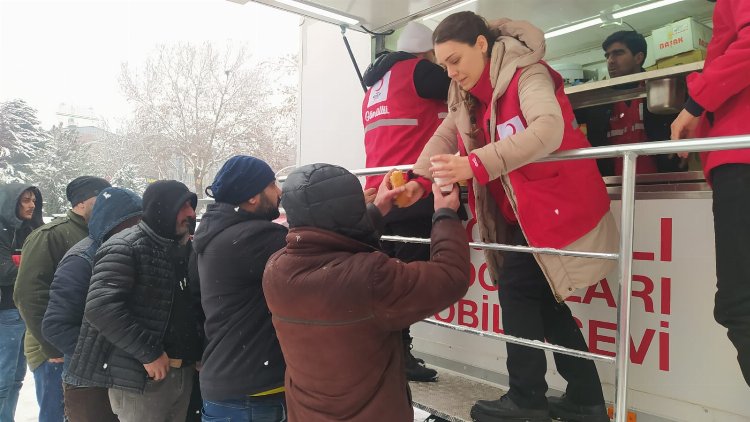 Kızılay, 77 ikram aracı ve 5 mobil mutfak TIR’ı ile depremden etkilenen illerde beslenme hizmeti vermek için afet bölgesinde. Ayrıca sıcak yemek, ikramlık malzeme, çorba, sıcak/soğuk içecek ve su dağıtımına devam ediyor.