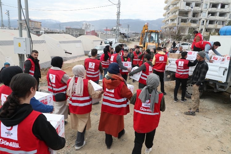 Kızılay, sıcak yemeğin yanı sıra yardım malzemeleriyle de depremzedelerin yanında oluyor.