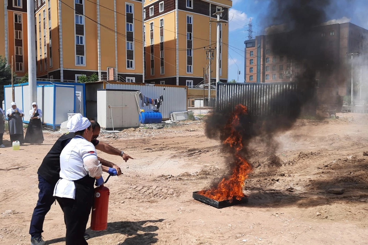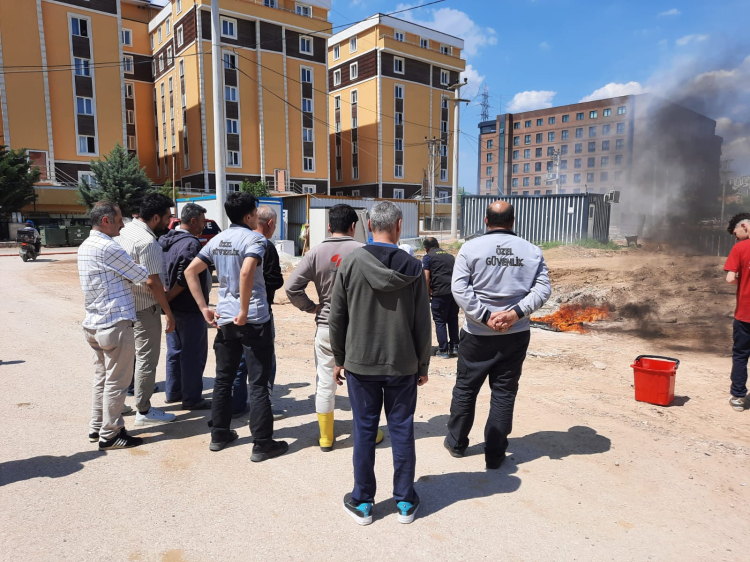 Teorik bölümde; yanma ve yangının temel prensipleri, yangın sınıfları ve türleri ile acil durumlarda yapılması gereken doğru hareket tarzları konusunda kapsamlı bilgiler aktarılırken, uygulamalı bölümde ise taşınabilir yangın söndürücülerin kullanımı pratik olarak gösterildi.
