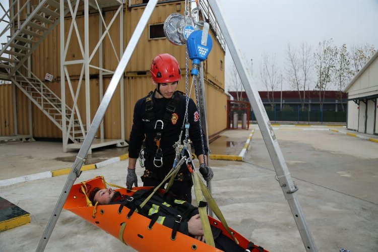 Uygulamalı eğitimde, dar bir alanda mekân güvenlik sistemleri kurularak müdahale malzemeleri hazırlandı. Olay yerinde güvenlik kontrolleri yapılarak kazazedeye erişimde kullanılacak farklı yaklaşımlar ayrı ayrı tecrübe edildi. Son olarak bu tip yerlerde kullanılabilecek sedye ve sabitleme metotları da uygulamalı olarak çalışıldı.