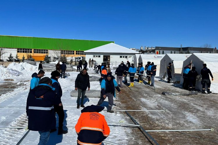Bölgede büyük bir ihtiyaç olan seyyar WC’lerin montajlarını da yapan Konya Büyükşehir Belediyesi, arama kurtarma, lojistik, ihtiyaç temini gibi hususların yanında şehre sürekli temiz su sağlamak için de gecesini gündüzüne katıyor.
