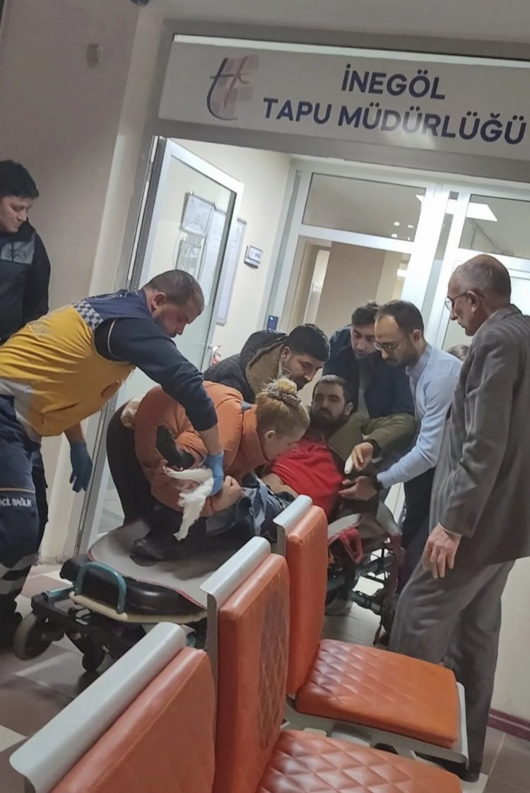 Tapuda davacıların üzerine olan mallara tedbir işlemi yapıldığı sırada öfkelenen Ekrem A., elindeki tabancayla avukatlara kurşun yağdırdı. Saldırgan aracıyla kaçarak kayıplara karıştı. Vücudunun çeşitli yerlerine isabet eden avukat Mustafa Furkan Soydan ve avukat eşi İrem Soydan yaralandı. Yaralı avukatlar, olay yerine sevk edilen ambulanslarla İnegöl Devlet Hastanesine kaldırıldı. Olayı duyan Memleket Partisi İlçe Başkanı Yasemin Soydan ise yaralanan oğlu Mustafa Furkan Soydan ve gelininin yanına hastaneye gelerek ilgilendi. Polis ekipleri kaçan şahsın yakalanması için çalışmalarını sürdürüyor.
