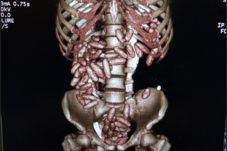 Sağlık kuruluşunda yapılan muayene ortaya çıkarılan kapsüllerin içerisindeki maddenin kokain olduğu belirlenirken, kuryenin 820 gram kokain yuttuğu belirlendi.