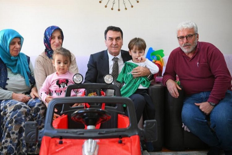 Osmangazi Belediye Başkanı Mustafa Dündar, Kahramanmaraş’taki deprem sonrası ailesiyle birlikte Bursa’ya yerleşen 4,5 yaşındaki Muhammed Osman’a enkaz altında kalan oyuncak akülü arabasının yerine yenisini hediye etti.