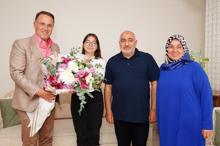 Beylikdüzü Belediye Başkanı Mehmet Murat Çalık, 4 Haziran’da yapılan ve 1 milyon 30 bin 195 kişinin girdiği Liselere Geçiş Sınavı’nda (LGS) 500 tam puan alarak Türkiye birinciliğini paylaşan komşuları Beril Gülser ve Ayşenur Eflal Demiray’ı ziyaret ederek başarılarından ötürü tebrik etti. Gülser ve Demiray’ı evlerinde ziyaret ederek hediyeler veren Başkan Çalık, öğrencilerin ailelerini de çocuklarının başarılarından dolayı tebrik etti.