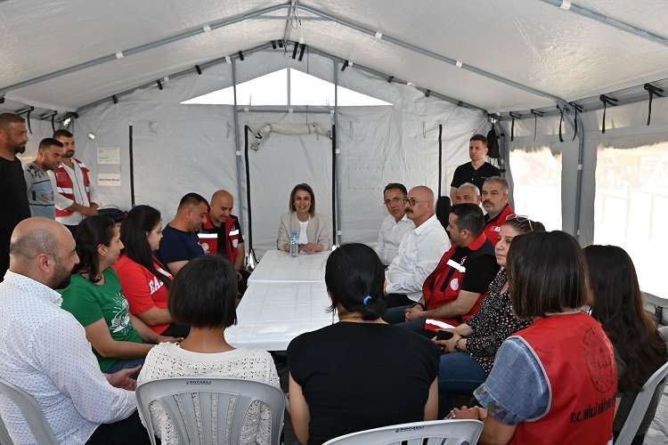 Nevşehir Valisi İnci Sezer Becel ve Nevşehir Belediye Başkanı Dr. Mehmet Savran, Hatay Defne Orhanlı Çadırkent’te depremzede çocuklarla bir araya geldi.