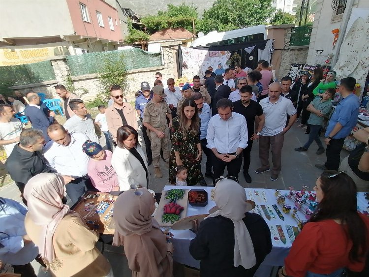 Kaymakam Mete’nin eşi Pınar Mete ile beraber katıldığı Serginin açılışına ilçe yöneticileri ve vatandaşlar yoğun ilgi gösterdi.
