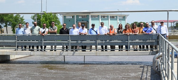 Genel Müdür Yardımcısı Gökhan Çevik, Atıksu Arıtma Dairesine bağlı şube müdürleri, mühendisler ile birlikte Belediye Başkanı Özcan ve beraberindekilere atıksu arıtma tesisini gezdirdi.