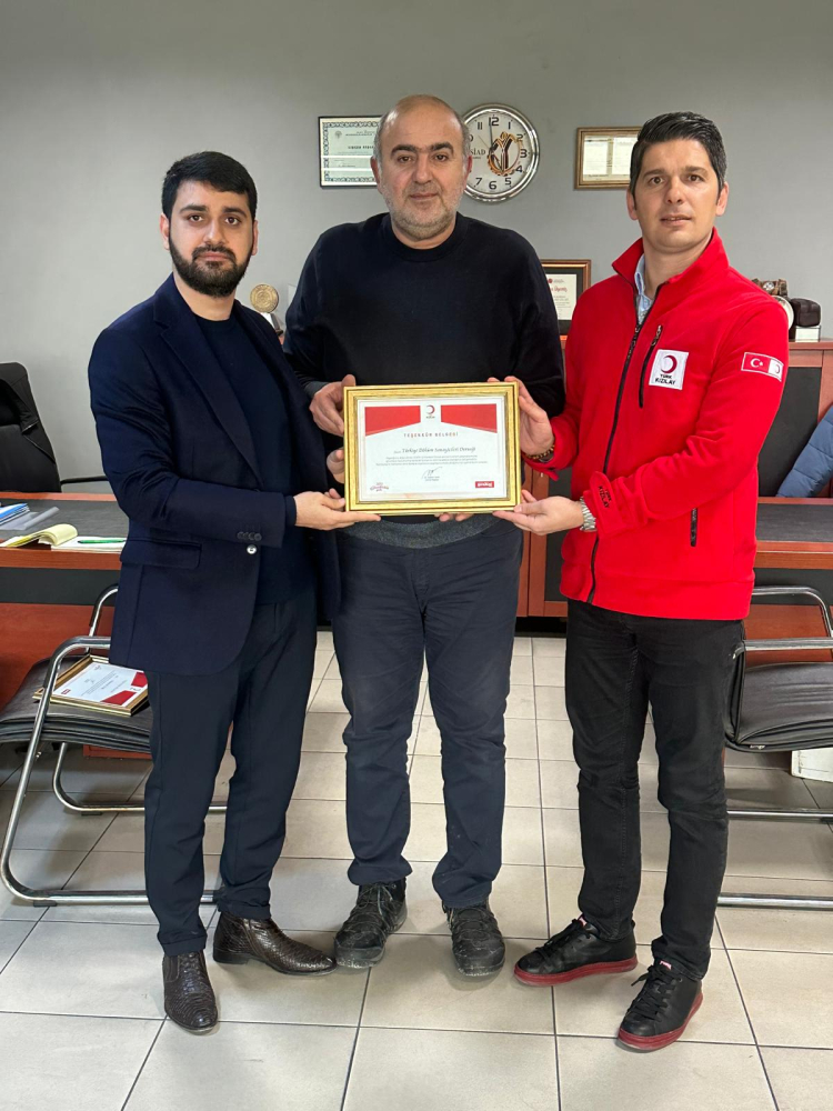 Bu anlamlı bağış dolayısıyla Dernek Yönetim Kurulu Üyesi Mehmet Ali Acar'a, Türk Kızılay Meram Şube Başkanı Mustafa Aydın tarafından bir teşekkür beratı takdim edildi.