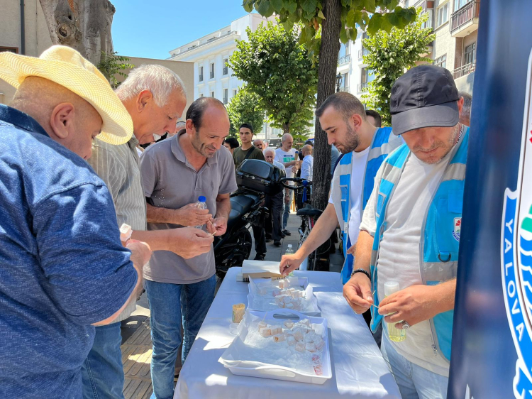 25 yıl önce yaşanan 17 Ağustos Marmara Depreminin yıl dönümünde Yalova Belediyesi tarafından Cuma namazı sonrasında Merkez Cami önünde lokum dağıtıldı.