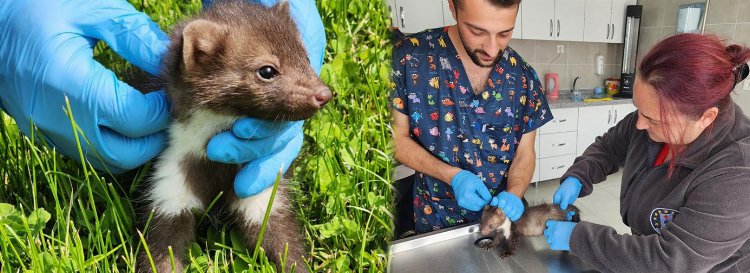 Yaralı sansar yavrusu tedavisinin geri kalanı ve rehabilitasyonu için Afyon Kocatepe Üniversitesi Yaban Hayatını Kurtarma Rehabilitasyon Eğitim Uygulama ve Araştırma Merkezi’ne gönderildi.