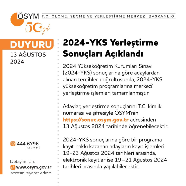 ÖSYM'nin 2024-YKS sonuçlarına https://sonuc.osym.gov.tr adresinden ulaşılabiliyor.