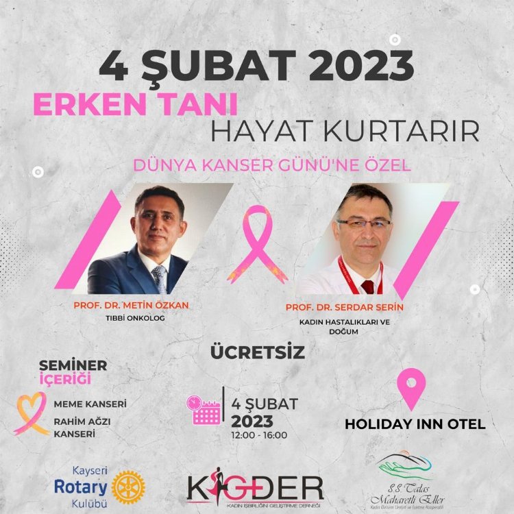 Kayseri'de Dünya Kanser Gününe özel olarak Meme ve Rahim Ağzı Kanseri'nde erken tanıya dikkat çekilecek bir ücretsiz etkinlik gerçekleştirilecek.