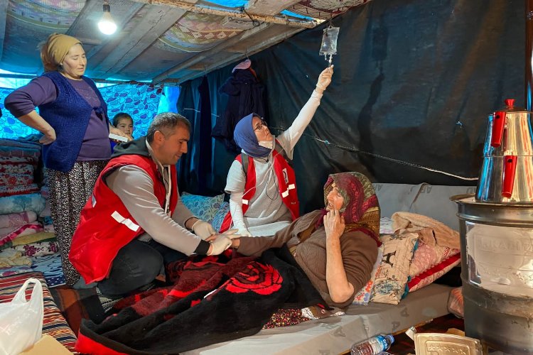 Deprem felaketinde büyük yıkımın yaşandığı illerde Kızılay Sağlık çalışanları 14 Mart Tıp Bayramı'nda da dışarı çıkamayan, evde sağlık hizmeti ihtiyacı duyan hastalar başta olmak üzere muayene olmak isteyen afetzedelere sağlık hizmeti sunmaya devam etti. Bugüne kadar 10 bin afetzedeyi muayene eden 16 bine yakın afetzedeye de ücretsiz ilaç dağıtımı gerçekleştirdi. 275 afetzede ise evde hasta bakımı gerçekleştirildi.