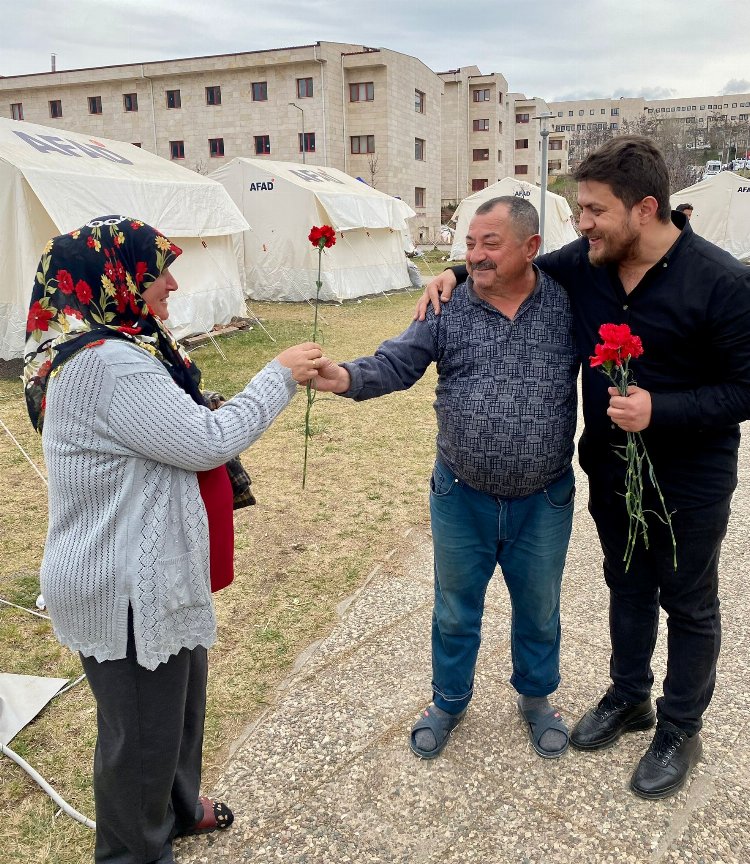 "Onbinlerce insanımızı kaybettiğimiz Kahramanmaraş merkezli depremlerin acısı halen ilk günkü gibi taze. Kaybettiğimiz canlarımızı unutmamız mümkün değil. Ancak yaralarımızı sararak, geride kalan emanetlere sahip çıkmak adına mücadelemizi sürdürüyoruz. Bugün de 8 Mart dolayısı ile depremde evini, yuvasını, sevdiklerini kaybeden kadınlarımız zor günlerden geçiyor. Bu günümüzü başımız tacı dirayeti ile destan yazan kadınlarımıza ayırdık. Yüzlerinde bir tebessüm oluşturabilmek için bir karanfil hediye ederek acılarını paylaştık. Kayıplarımızın telafisi mümkün olmasa da yaralarımızı birlikte saracağız".